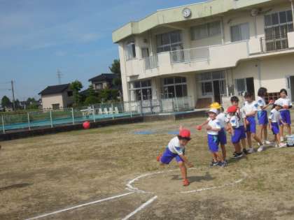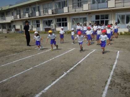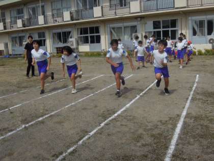 いきいきタイム(大休憩)でのMTトレーニングです。今日は、グラウンドで50メートル走、ソフトボール投げ、ラダーを使ったトレーニングを行いました。