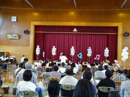 9月25日(日)、本校体育館で水橋東部ふるさとづくり推進協議会主催「ウィークエンドコンサート」が開催されました。『なんと!吹奏楽団』のみなさんの演奏です。ドラえもんからビートルズ、そして演歌メドレーとあらゆる年代の方が楽しめるものとなっていました。本校5年生担任も特別出演ということで、子供たちもたくさん参加していました。何事も本物に触れるということは、すばらしいことですね。