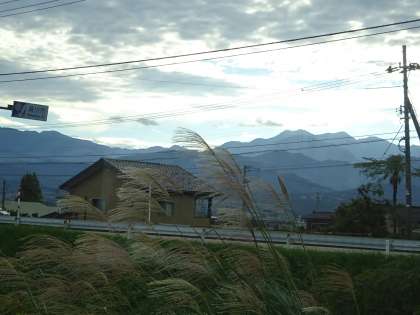 移動中のバスの中からは、ススキや立山連峰の風景を楽しむことができます。