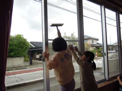 早速、縦割り清掃の時間に窓ふきをする班がたくさん見られました。