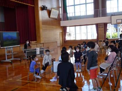 1学期の生活アンケートの結果、MTっ子の中には、日常生活で「イライラすることがある」という人がたくさんいることが分かりました。健康委員会の5、6年生は、その結果を劇風にしてMTっ子のみんなに課題として投げかけました。