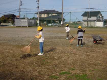 3年生は、昨日に引き続き、グラウンドの落ち葉や苔をきれいに取り除きました。