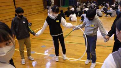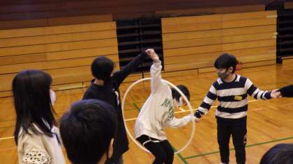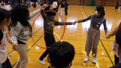5年生は、自己紹介ゲーム、フラフープくぐり、長縄跳びをしました。