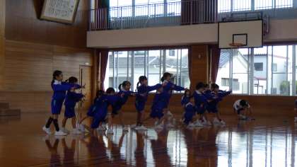 1年生の「8の字跳び」の様子です。練習を始めた頃は、連続で入り続けることが難しく、何度も悔しい思いをしてきました。子供たちはその悔しさをバネに、声をかけ合ったり、縄の回し方を考えたり、友達の背中を優しく押してタイミングを伝えたり、たくさんの工夫をしてきました。今日はその成果が発揮され、全員連続で入り、ジャンプすることができました。