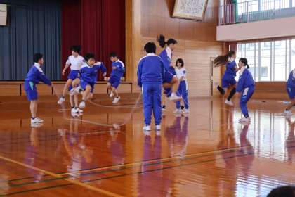 5、6年生は、大縄やリズム跳び等いろいろな技に挑戦しました。また、今日は楽しくそして最高の演技をすることができました。