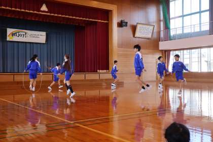 リズム跳びでは、動きをそろえることを意識して跳びました。また個人跳びでは、自分が挑戦したい技を精一杯がんばりました。最後のなわとび発表会に満足した様子でした。