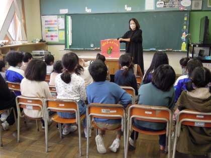 今日の読書タイムは、よみきかせの会の方に来て頂きました。
