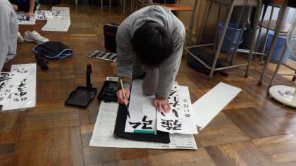 今日は、書き初め練習をしました。今年の6年生の文字は「強い信念」です。書き初め大会に向けてたくさん練習していきたいと思います。