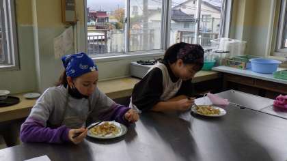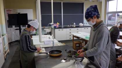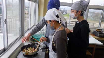 つくったおかずは、担任の先生にも食べてもらいました。「おいしい!」の感想をもらい、子供たちもうれしそうでした。