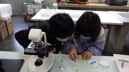今日は、講師の方に顕微鏡の使い方を教えていただき、ミジンコやミカヅキモ等を観察しました。5年生は、ミジンコ等を観察したことがなく、初めて見た微生物に驚いていました。6年生は、以前にも観察したことがありましたが、微生物に興味をもち動きなどに注目していました。