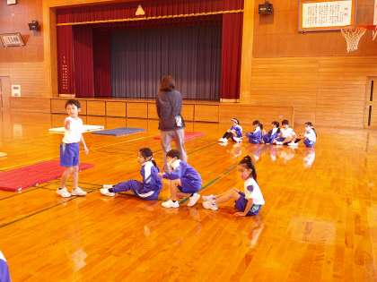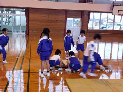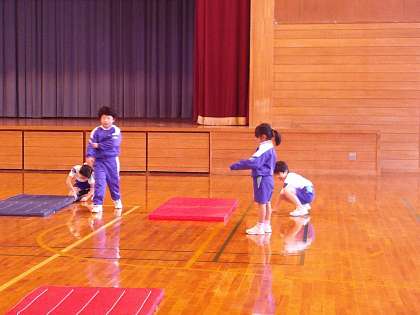 体育科では、マット運動をしています。ブリッジなどの難しい技にも挑戦しています。「できないことに挑戦するのが楽しい」と話す子供たち。進んで練習をしています。また、協力して、準備や片付けもしています。