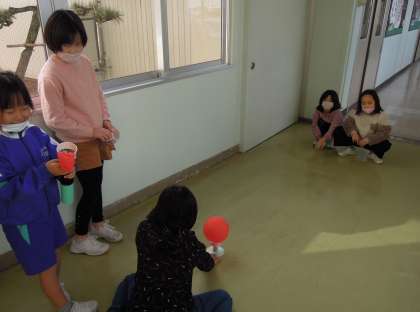 先週のサイエンスカー訪問活動で作った「手作りホバークラフト」で遊ぶ1、3年生の姿もありました。