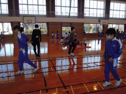 今日のMTトレーニングは、これまでのトレーニングを思い出しながら、「体育館を走る」「マット運動」「シャトル投げ」「ラダートレーニング」など、自分の今やりたいトレーニングを決めて行いました。