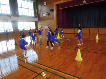 1、2、3年生は今、体育の学習で「ボールシュートゲーム」をしています。
