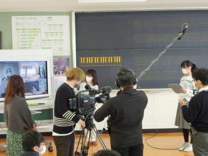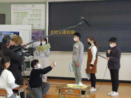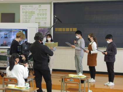 スタジオから水橋東部小学校の特徴(話題や学校生活)について質問があり、6年生が答えました。