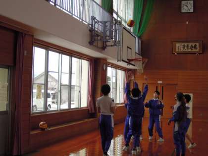ストラックアウト、長縄跳び、バスケットボールのミニゲームをしている子供たちです。