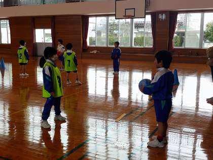 ボールシュートゲームでは、真ん中に設置されたコーンを守ったり、倒したりして点数を競うゲームです。攻める側のチームは、上手くコーンを倒すことができれば、3点ゲットです。守る側のチームは、投げられたボールをキャッチし、すべて回収することができれば1点ゲットです。毎時間、白熱した試合が行われています。