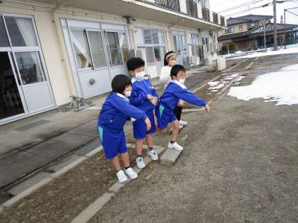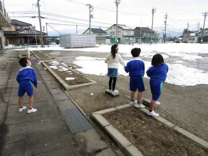 自分の心の中の鬼は何か考え、グラウンドに向かって、豆をまいて追い払いました。