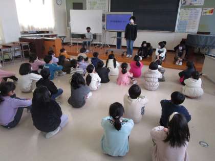 1〜3年生に、プロジェクトの内容を説明したり、協力をお願いしたりしました。