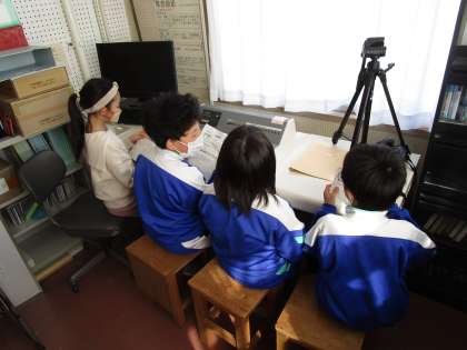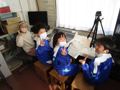 今日は3〜6年生がスキー学習のため不在だったので、委員会の仕事ができませんでした。そこで、給食時の献立放送を、2年生が担当しました。