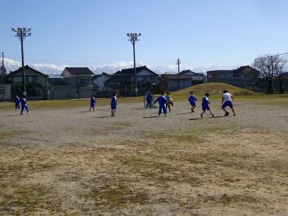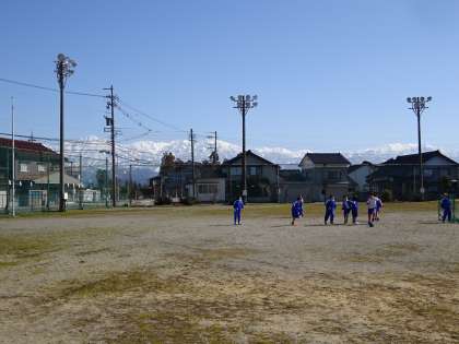 昼休み、3年生は、立山連峰をバックにグラウンドで思い切りサッカーを楽しんでいました。
