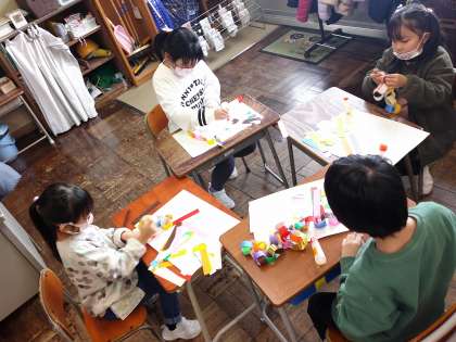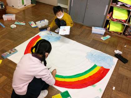 卒業を祝う週間に向けて、飾りを作りました。「ありがとう」の気持ちを伝えるために、そして6年生に喜んでもらうために、一生懸命作成しました。