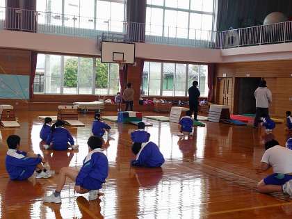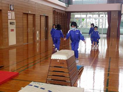 体育科では、2・3年生と一緒に跳び箱の学習をしています。目標をもって、練習に励む子供たちです。