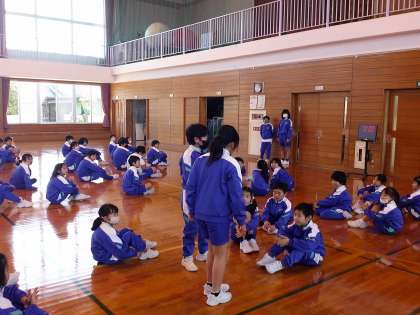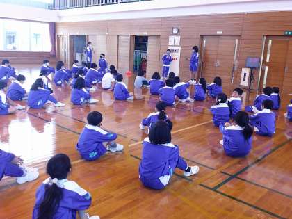全校でけいどろをしました。1年生は、お兄ちゃんやお姉ちゃんと一緒に遊ぶことができてとても楽しかったようです。最後には、堂々と感想を発表することができました。