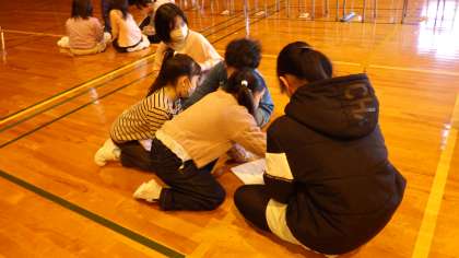 5年生が企画した「縦割り班でチャレンジ!Fun!Fun!クイズ」は、班のみんなで大盛り上がりしました。