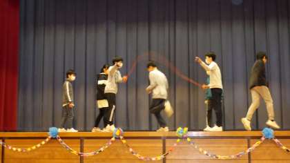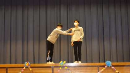 6年生から、サプライズの出し物がありました。「学校あるある」のコントに一同大爆笑でした。