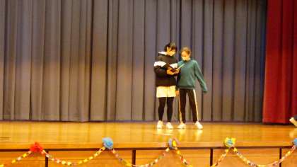 6年生からは、在校生に感謝の気持ちを伝えようと劇をしました。自分たちの小学校生活を振り返ったりお笑い要素を入れたりしました。在校生にも楽しんでもらえてよかったです。
