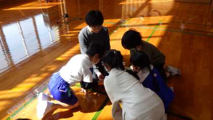 明日の縦割り清掃で今年度の縦割り班での活動が終了します。そこで、6年生は在校生にメッセージ付きのしおりをプレゼントしました。