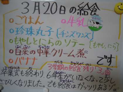 3月20日(月)の給食