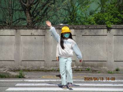 交通安全教室がありました。2年生の子供たちは、昨年度行っているので自信をもって行っていました。横断歩道を渡るときに止まってくれた車に会釈をする子どももいました。最後に代表の友達がお礼の言葉を立派に言うことができました。