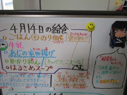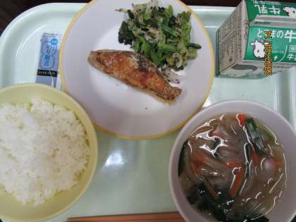今日の給食です。鯵の唐揚げは、カリッとした食感で、とてもおいしいです。