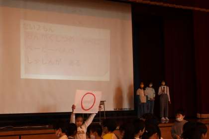 本番では、全校のみんなの反応を見ながらクイズを進めようとがんばりました。また、会場の準備や片付けでも、自分にできることを見付けて働こうとする姿がたくさん見られました。