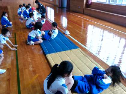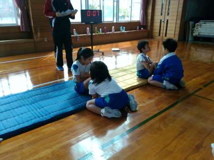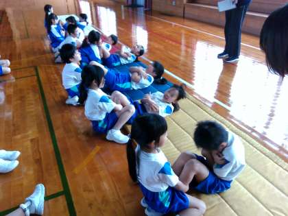 体育科ではスポーツテストを行いました。今日は、上体起こしと握力測定を行いました。2・3年生は1年生に教えたり、見本を見せたりしていました。