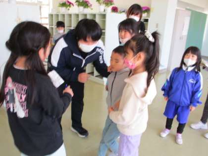 子供たちは、案内係、遊びコーナー係、司会進行係と3つに分かれて行いました。自分の役割をしっかりと果たし、1年生と仲良くできて、にこにこの表情でした。