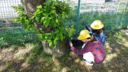 子供たちは、自分が観察すると決めた木の枝の写真を撮ったり、枝の長さを測って記録したりしました。