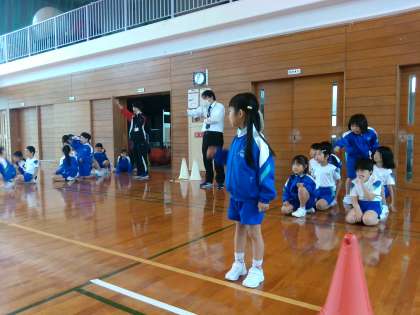 体育科では、運動会に向けて折り返しリレーを行いました。今日は、バトンやボール等様々な道具を使って練習しました。