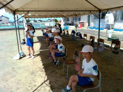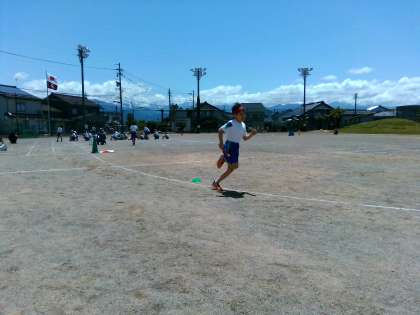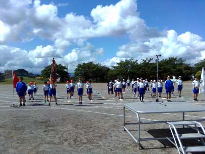 運動会の予行練習を行いました。子供たちは力を出し思い切り走ったり、大きな声で応援したりしていました。当日は、子供たちのがんばる姿を、保護者の皆様や地域の皆様に見ていただきたいです。