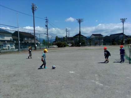 今日は天気が良かったので、グラウンドでサッカーをしました。子供たちは広いグラウンドを元気よく走っていました。