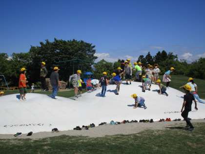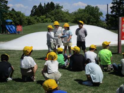 民俗民芸村の後、岩瀬スポーツ公園に行きました。他の学校の考えたゲームを楽しんだり、自分たちの考えたゲームを紹介して遊んだりしました。また、遊具でも遊びました。