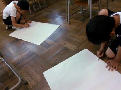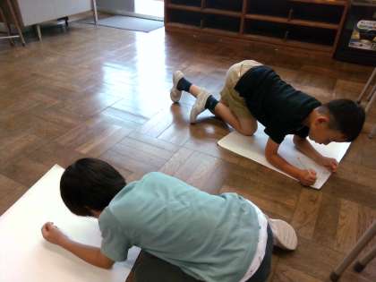 外で遊ぶのが大好きな子供たち。雨の日にも楽しいことができないか話し合い、すごろくを作ることにしました。