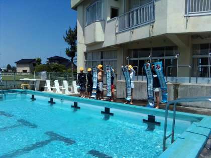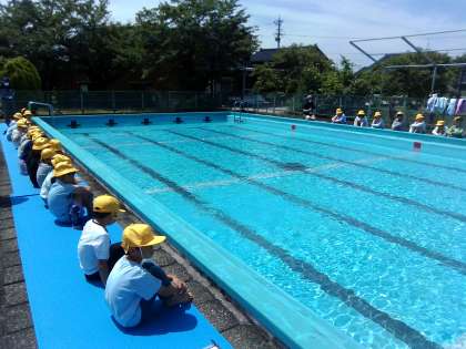 天気に恵まれ、プール開きを行うことができました。健康委員会の子供たちからプール学習の約束についてお話がありました。お話の中にでてきた「みず(す)あそび」の合言葉を守り、これから安全に楽しく学習してほしいです。