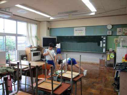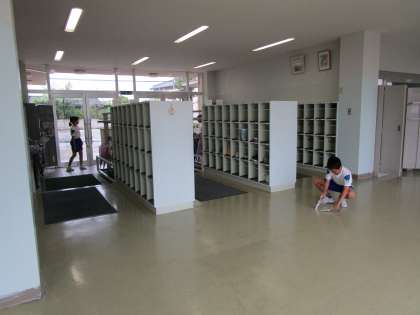 木曜日の朝は、縦割り清掃です。班ごとの大まかな掃除場所は決まっていますが、掃除場所や使う道具は、子供たちの自主性に任せています。「ここをきれいにしたい、こんな掃除をしたい」など、どの子供たちも一生懸命取り組んでいます。