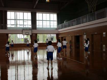 上学年は、体育館でドッジボールを楽しんでいました。下学年は、グラウンドで遊んでいました。