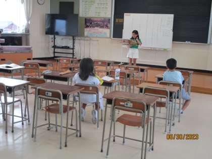 音楽の学習では、歌の発表会を行いました。3年生で学習した歌から自分で選び、みんなの前で歌いました。