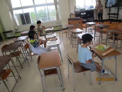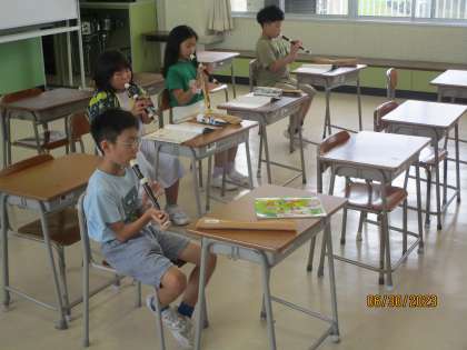 音楽の時間には、リコーダーの練習もしています。3年生になって始めて使う楽器を、楽しみながら演奏しています。