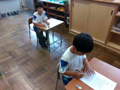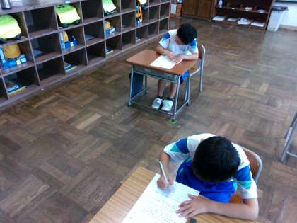 道徳科「はしのうえのおおかみ」では、お話に出てきたおおかみやうさぎになりきって演技をしたり、友達の考えを聞いたりしながら、登場人物の気持ちを話し合いました。子供たちは、「やさしい人は相手の気持ちをかんがえることができる人だ」と学習を通して考えていました。
